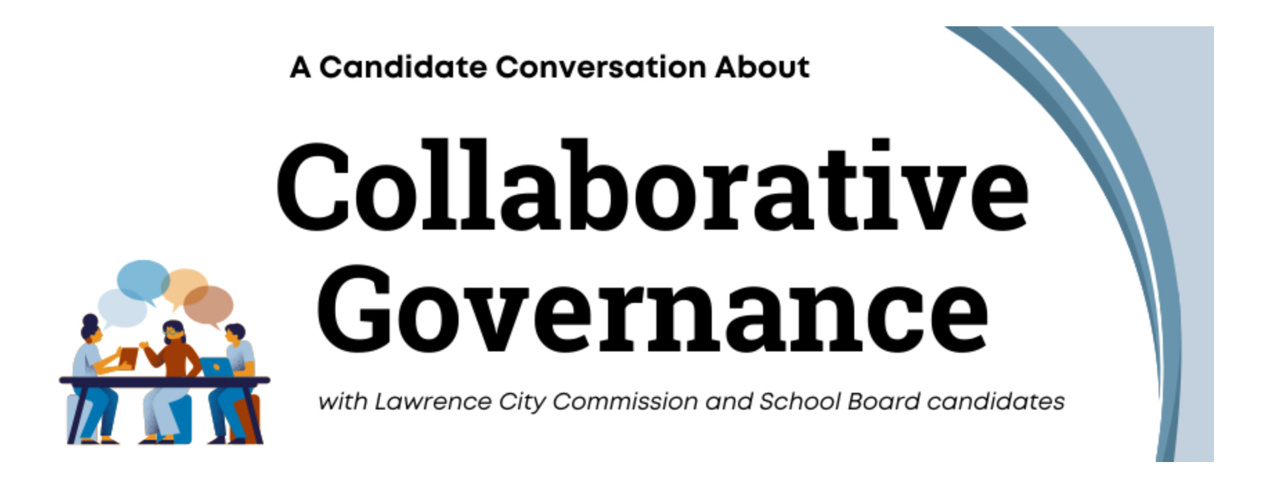 Please join Lawrence City Commission and School Board candidates at a Candidate Conversation hosted by the Coalition for Collaborative Governance! During this discussion, candidates will answer questions about