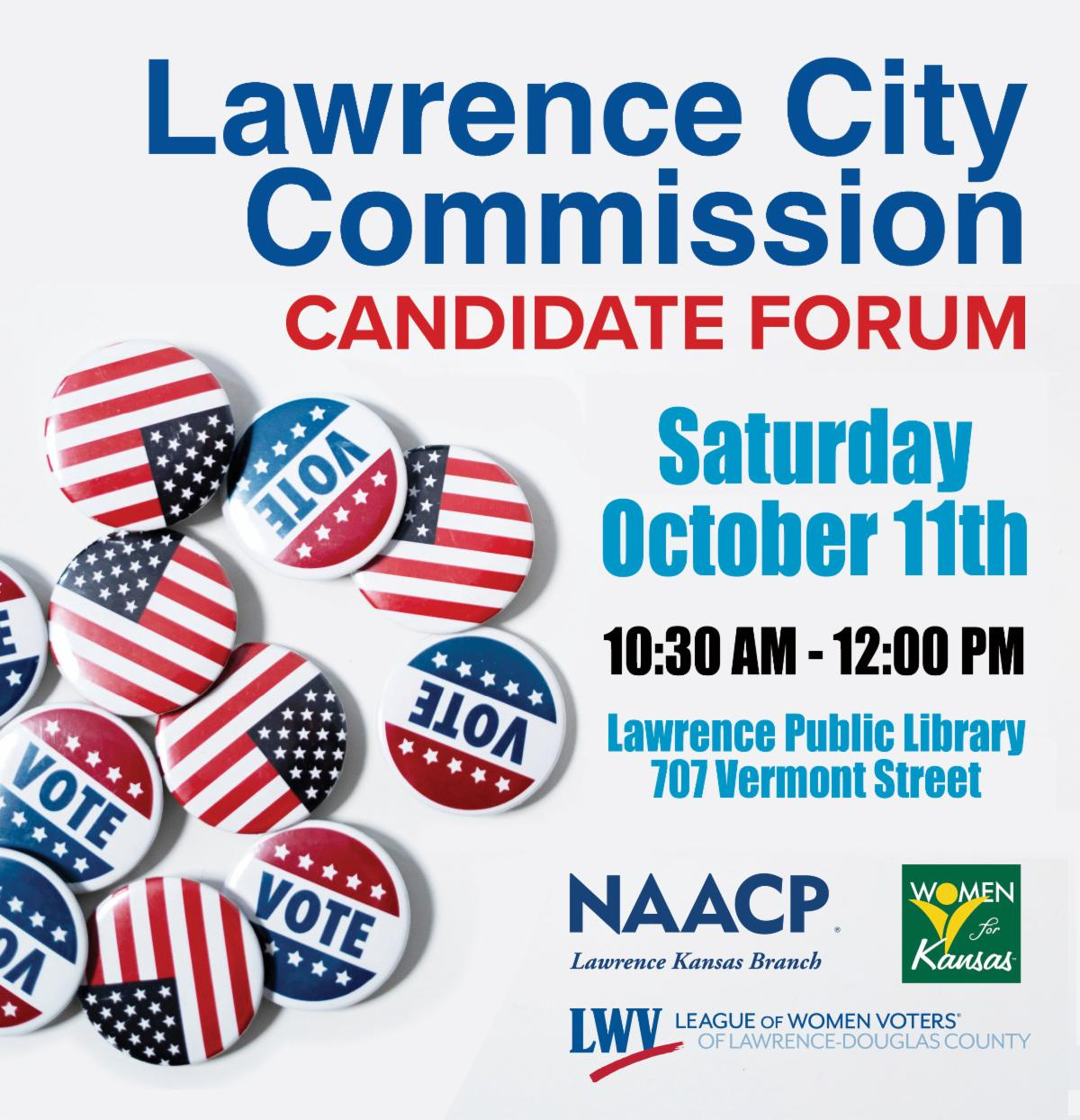 Sponsored by Women for Kansas, Lawrence League of Women Voters and NAACP Lawrence KS.